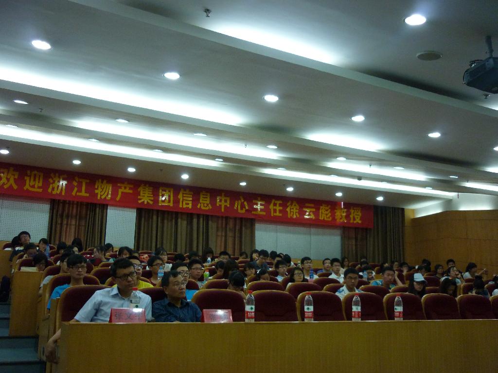 为广大同学们主讲IT行业现状及就业前景,并作现场答疑解惑。本次CIO大讲堂由姚建荣教授主持,信息学院院长张文宇老师出席大讲堂活动,活动吸引了学院电子商务、信息管理与信息系统、计算机科学与技术及软件工程4大专业广大同学的热烈欢迎。