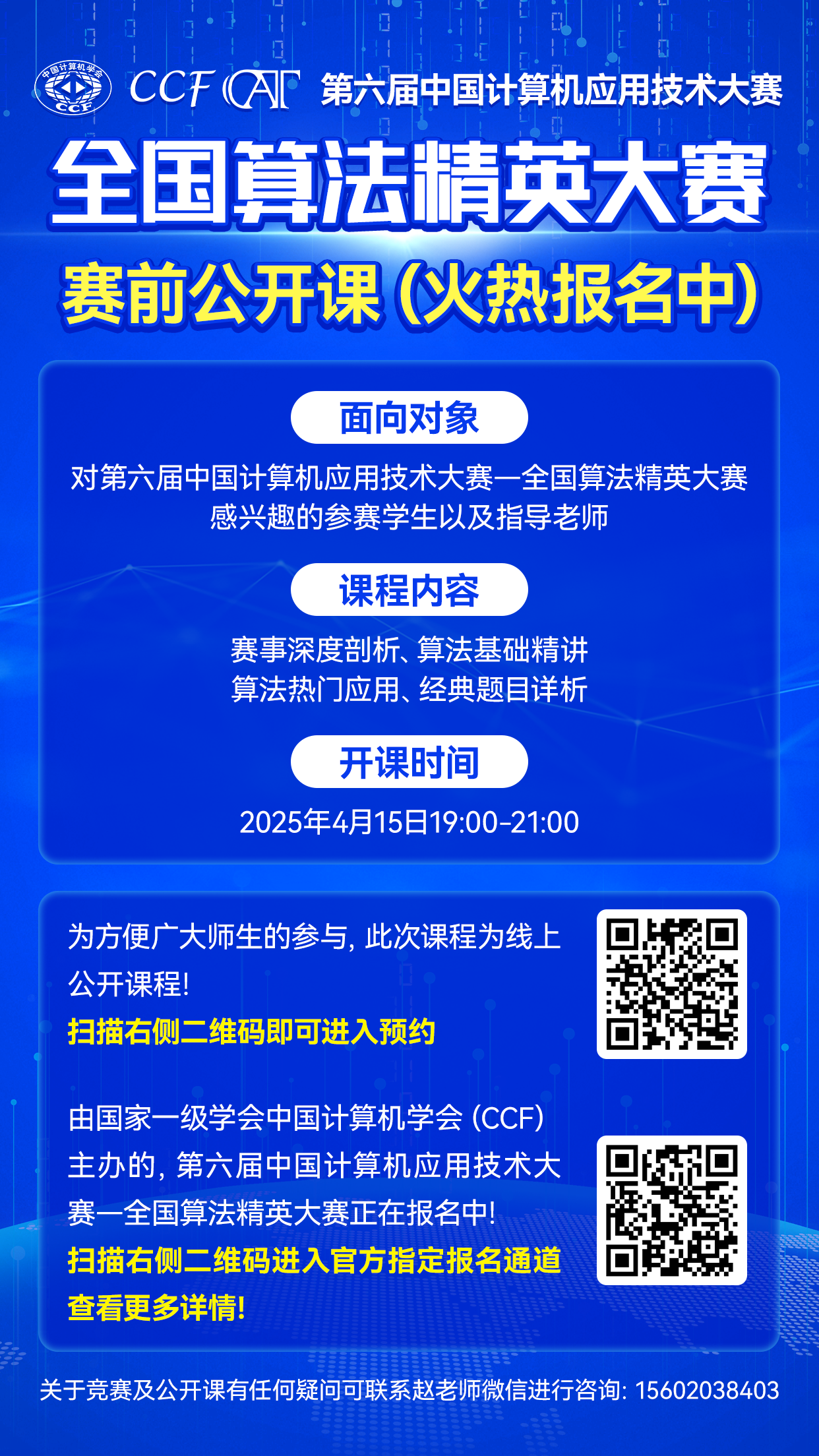 为深入贯彻落实国家创新驱动发展战略,加快计算机应用技术人才培养,促进计算机应用技术创新发展,现组织学生参加中国计算机学会主办的“第六届中国计算机应用技术大赛”。具体说明如下: