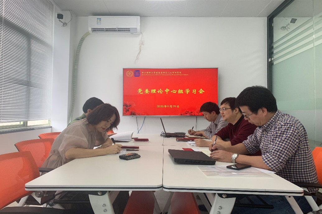 9月29日下午信智学院党委理论学习中心组召开会议,专题学习省委书记袁家军在省委党校秋季学期开学典礼上的讲话精神,会议由学院党委书记徐奇伟主持。