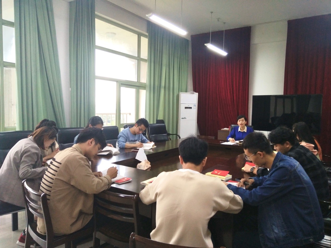 10日,于9号楼506会议室,在陈小芳老师带领下,开展以“‘不忘初心、牢记使命’宗旨意识担当作为”专题学习会,转述浙江财经大学党委书记李金昌、纪委书记陈金方在“‘不忘初心、牢记使命’宗旨意识担当作为”专题学习会上的讲话内容,集中学习上级文件精神。