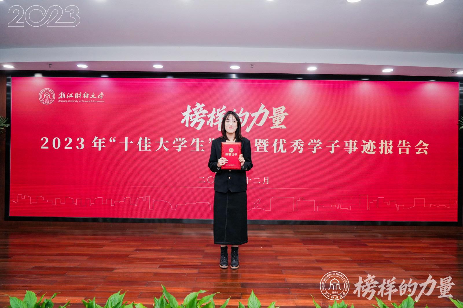 近日,浙江财经大学公布2023年“十佳大学生”评选结果,我院裘一蕾获评2023年“十佳大学生”,李甫俊获评2023年“十佳大学生”提名奖。