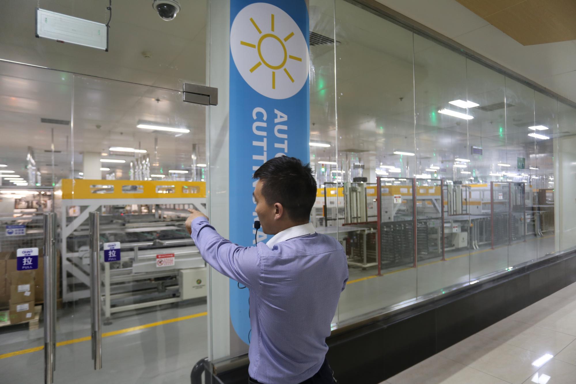 之后,学生跟随工作人员参观了生产车间,在工作人员的细致讲解下,大家对光伏板的制造工艺有了一个初步的了解。互动环节中,针对学生们提出的各个问题,工作人员也都详细地进行了解答。