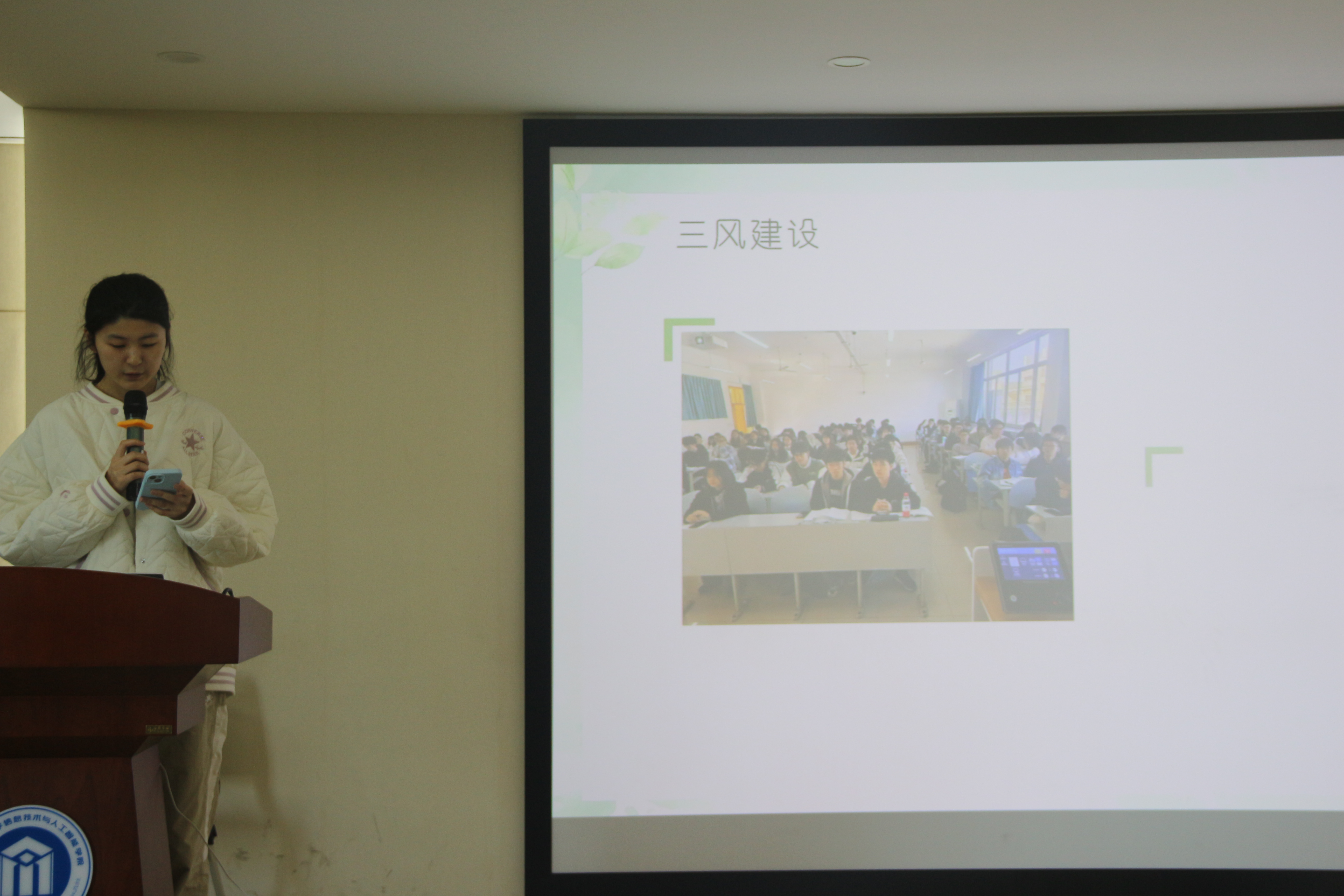 会议伊始,吴轶韵副书记致辞,总结了我院一年来学风建设取得的成绩,结合学院“铁三角”项目培养目标,寄语同学们全面发展,期待信智学子再接再厉,努力成长成才。