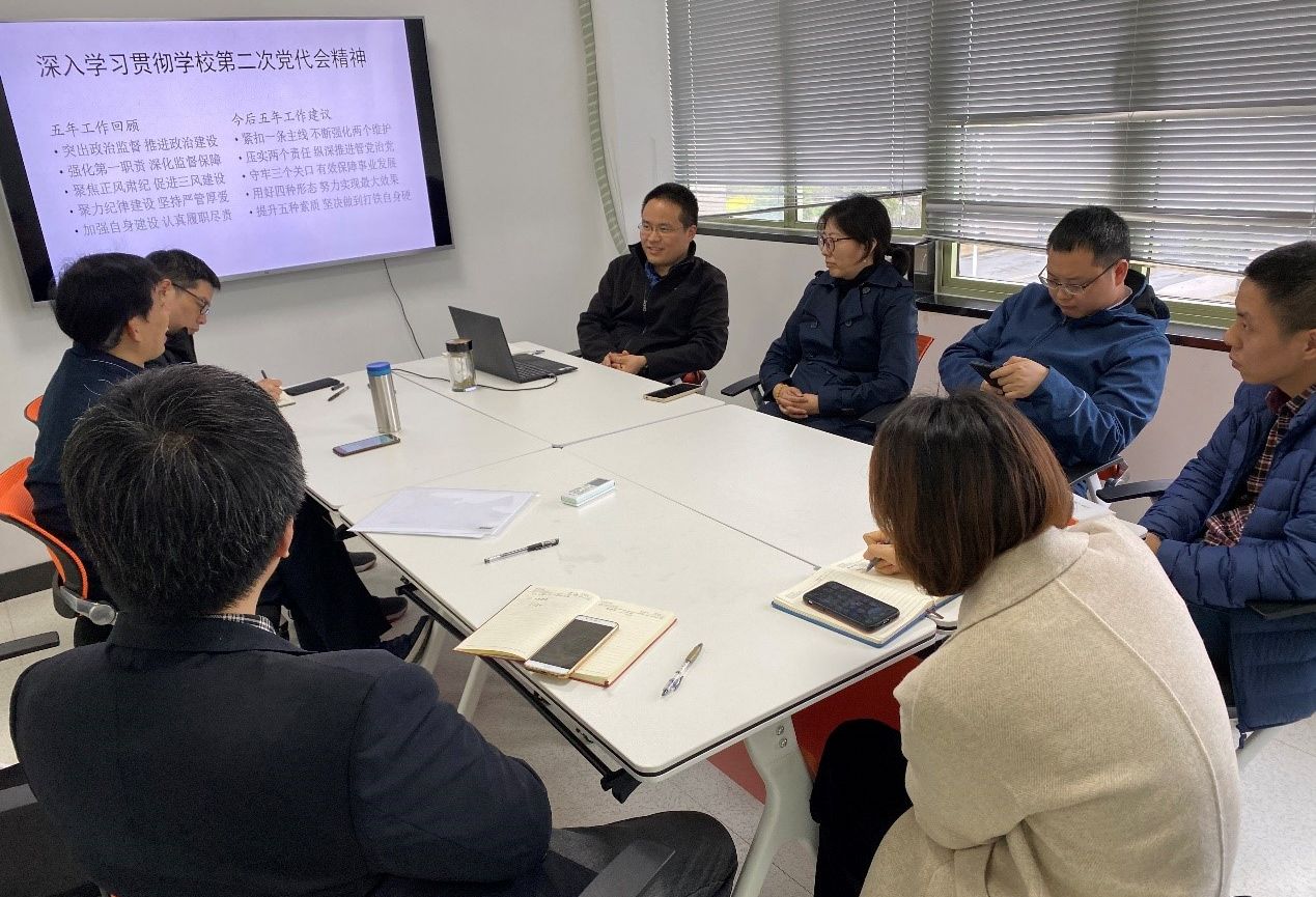 3月16日下午,教工第四支部组织学习了学校第二次党代会精神。会议由支部副书记陈伟锋同志主持,会上传达了中国共产党浙江财经大学第二次代表大会精神,带领全体党员学习研究了校党委《培根铸魂,日新又新,为建设特色鲜明的一流财经大学而努力奋斗》的工作报告,对过去五年校党建工作进行了回顾,并对未来五年工作学校改革发展的主要任务进行了学习。结合本支部具体情况,陈伟锋同志指出支部的工作要求是坚持以习近平新时代中国特色社会主义思想为指导,贯彻好、落实好学校第二次党代会精神,专业、学科建设要围绕学校“特色鲜明的一流财经大学”目标,进一步推动软件工程专业高质量发展。