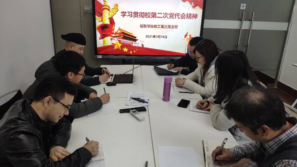 2021年3月16日,信息管理与人工智能学院教工第三党支部全体党员,在上学期末以线上线下相结合的方式学习校第二次党代会精神的基础上,继续深入学习与贯彻落实校第二次党代会精神。