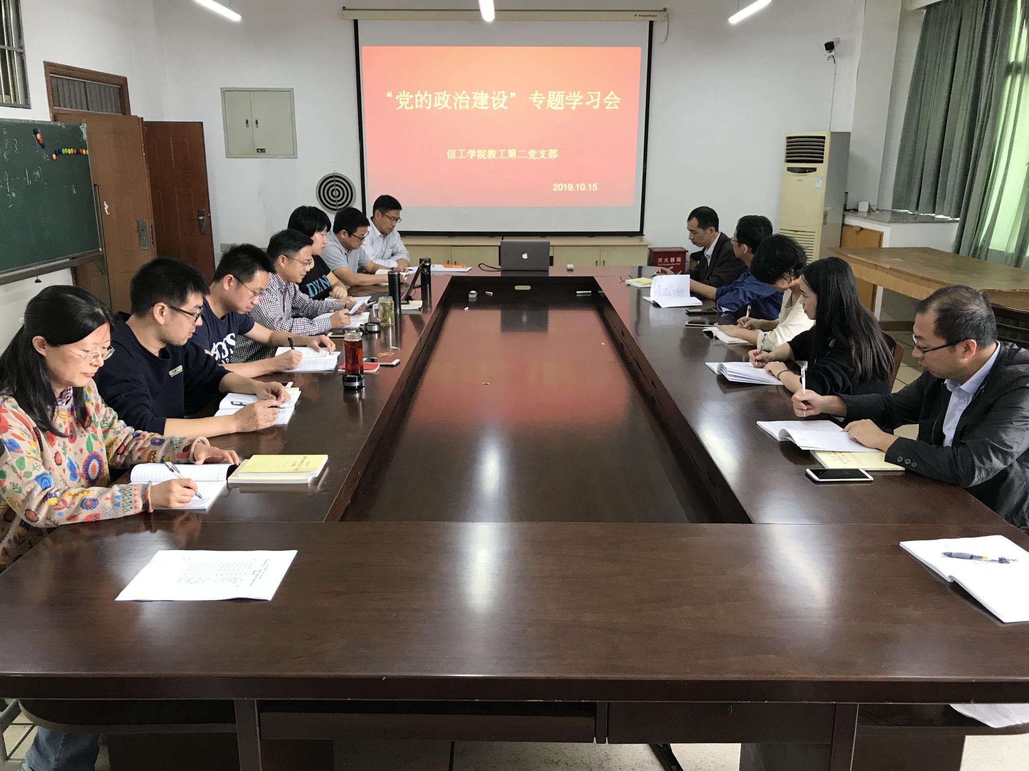 10月15日下午教工第二支部全体党员教师在9号楼305东召开了“教育报国守初心,立德树人育英才”的主题党日活动,以及“党的政治建设”和“党的政治纪律和政治规矩”两个专题学习会。