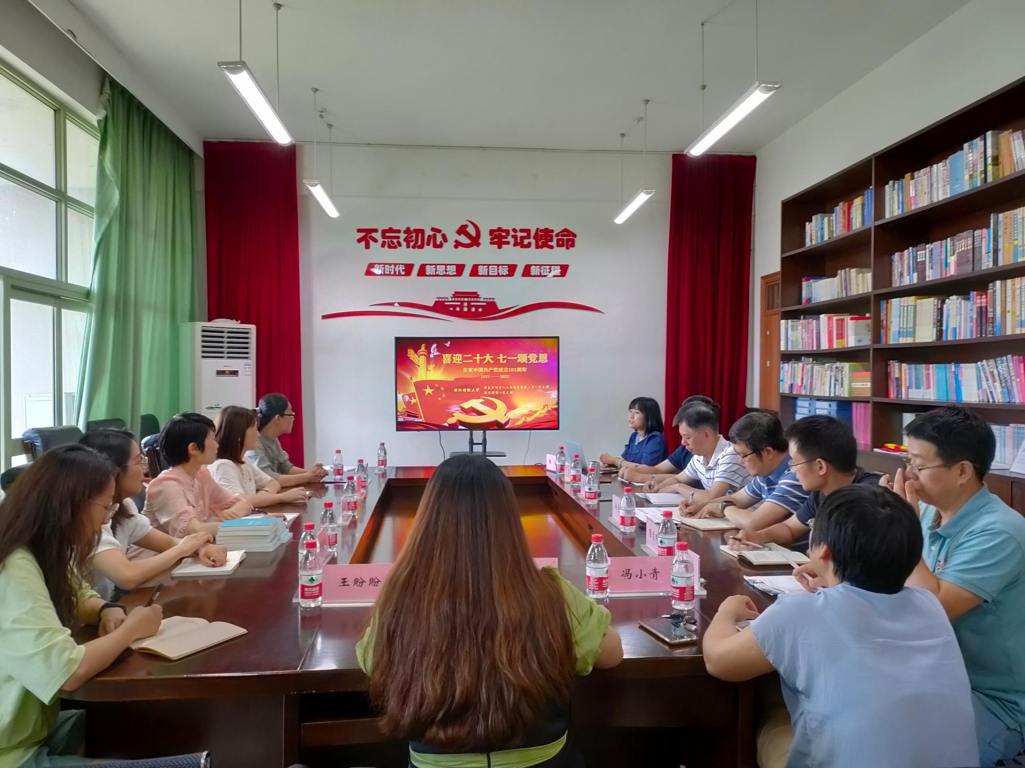 教工第一党支部与图书馆第二党支部联合学习宣传贯彻省第十五次党代会精神,集体过政治生日,重温入党誓词,喜迎二十大。