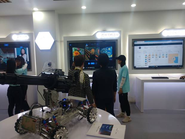 在创业学院楼1楼西建设人工智能体验园,占地面积204平方,设备价值近120万元。目前,人工智能体验园由视频展示介绍区、机器感知区、互动体验区、机器执行区、虚拟现实区、综合应用区和互动体验区等六部分构成。拥有语音识别演示系统、视频融合演示系统、人脸融合展示系统、图像风格转移系统、可视化神经网络演示系统、六轴视觉机械臂、人机对弈棋盘、车载视觉防卫系统、激光雷达车载套件、虚拟现实解决方案、增强现实解决方案、互动编程试验箱等设备。