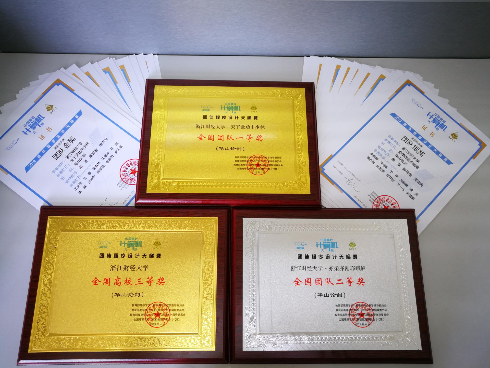 2019团体程序设计天梯赛浙财大获奖奖牌与证书