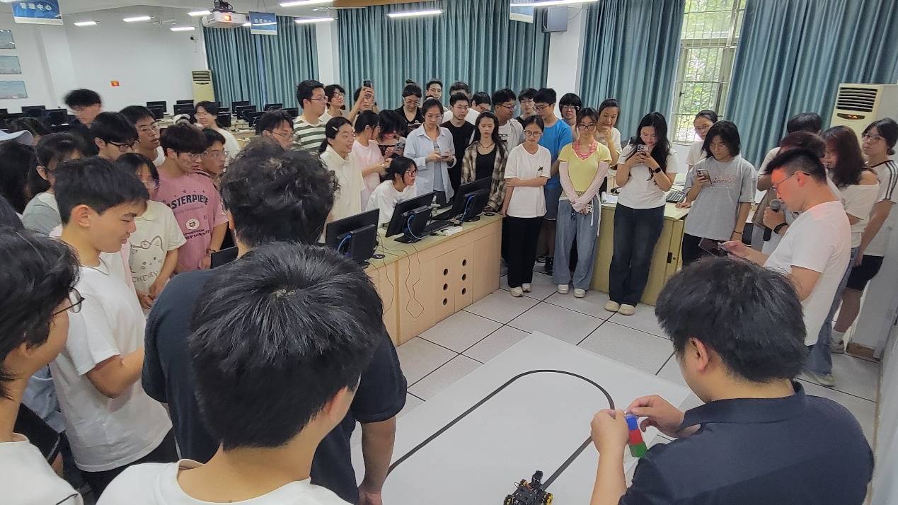 第三阶段是学生分组组装智能车并测试。学生们以小组为单位,领取了智能车套件后,便迅速投入到紧张而有序的组装工作中。在专业教师的指导下,学生们分工明确,有的负责硬件组装,有的负责软件编程,有的负责调试优化。经过一番努力,一辆辆智能车在学生们的手中逐渐成型,并进行了测试。整个测试现场气氛热烈,学生们积极交流、相互学习,充分展现了计算机系学生的专业素养和团队协作精神。