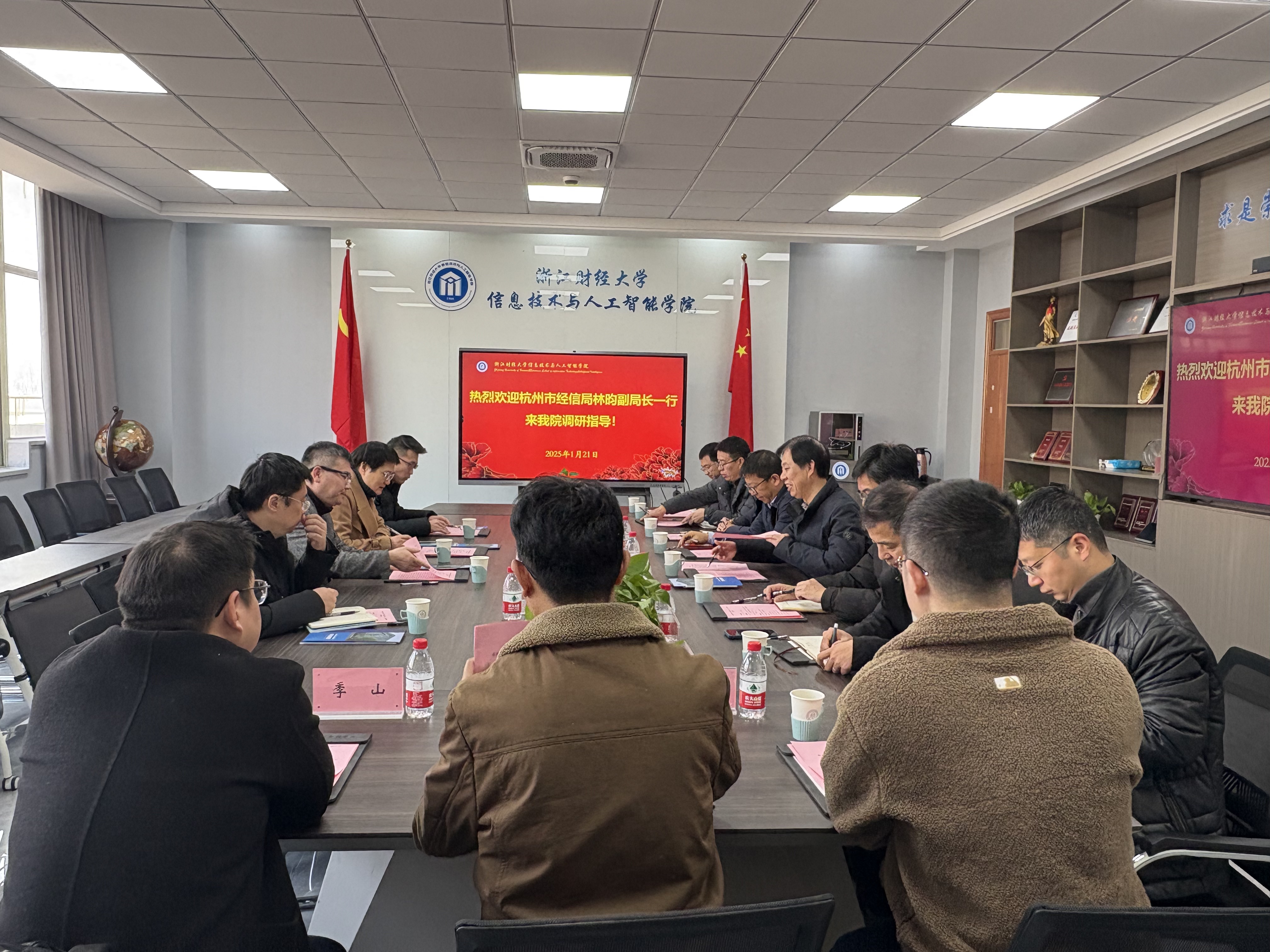 1月21日,杭州市经济和信息化局副局长林昀、产业数字化推进处副处长梁超、软件和信息服务业处副处长沈辉、技术创新处(人工智能产业处)陈昊一行调研信智学院,学校社会合作处处长杨剑勇、学院院长张帅、学院党委书记吴翼泽等陪同。