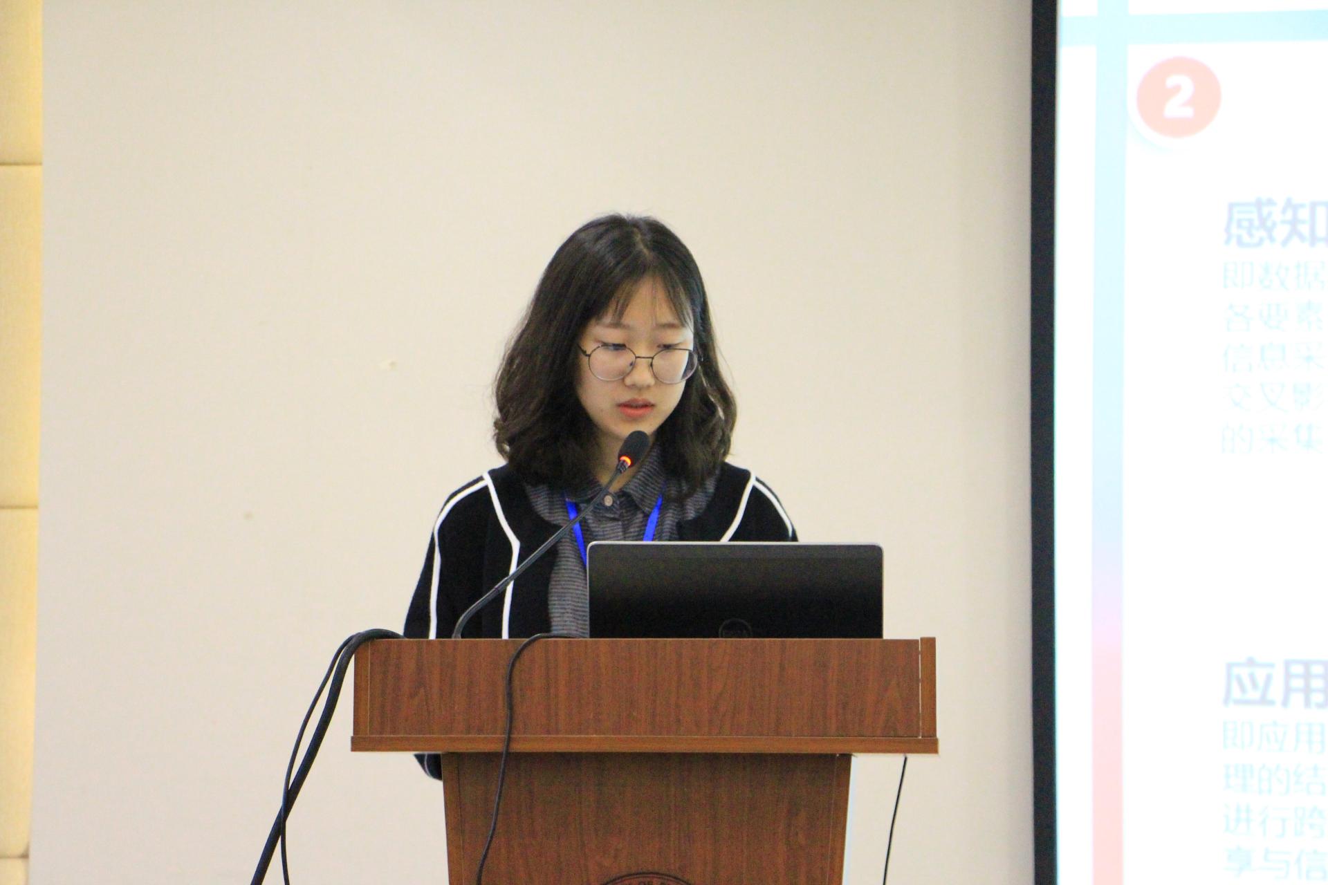 张咪同学以“摘下伦敦夜空的科技之星”为主题结合信息专业的特色,从隐私安全和互联网运用两方面讲述了中西方的种种差异,并向大家介绍了著名的牛津以及剑桥大学。