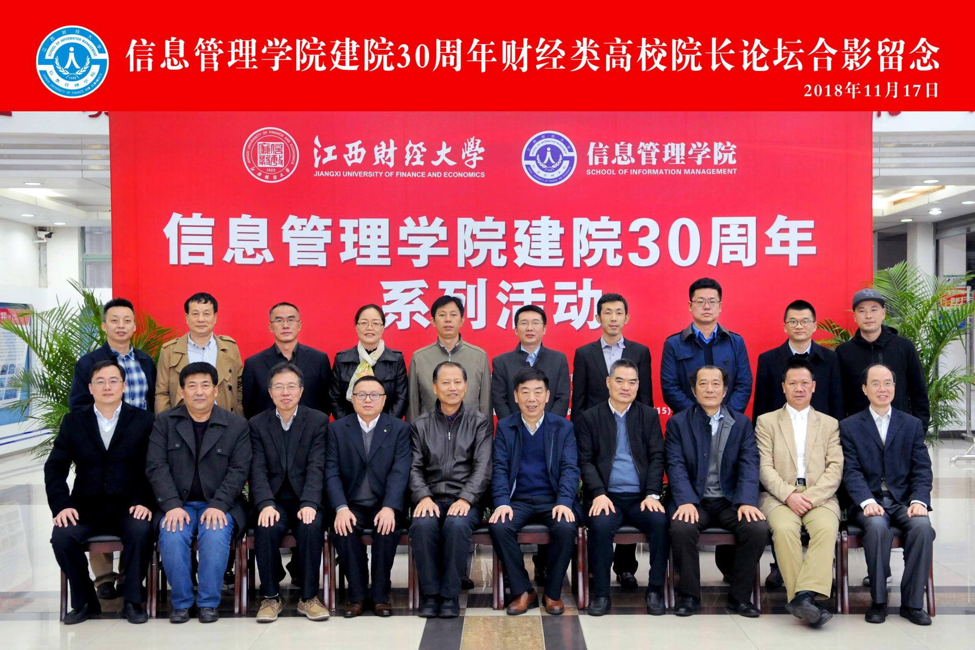 11月17-18日,我院副院长张帅教授、电子商务系副主任杨水清副教授应邀参加江西财经大学信息管理学院30周年建院庆典暨财经类高校院长论坛。参加此次活动的有全国多所财经类院校信息学科和管工学科的20多名院长、副院长、专业负责人等。