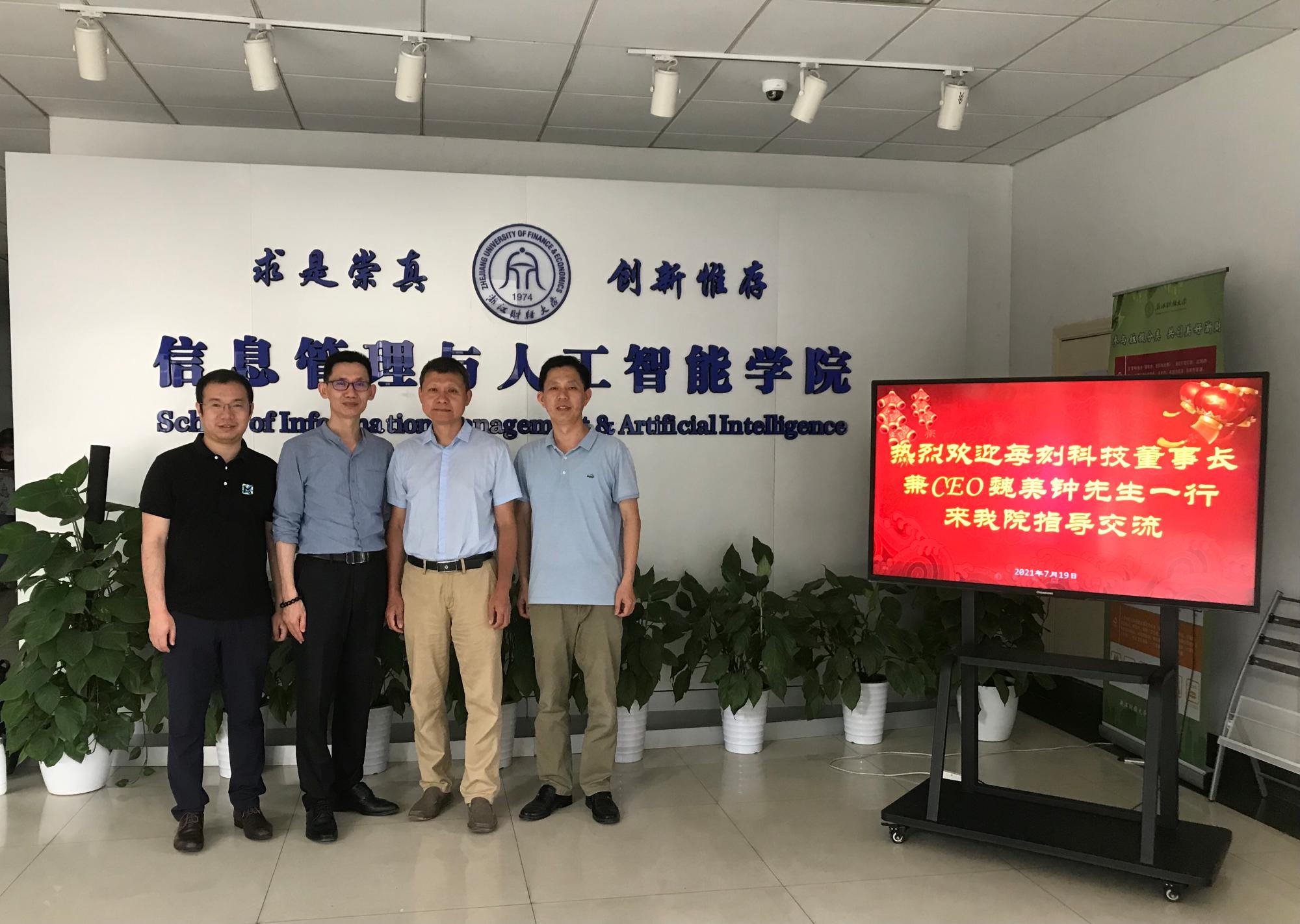 洽谈人工智能校企合作事宜。学院院长张帅、人工智能研究院院长张文宇热情的接待了魏美钟一行。