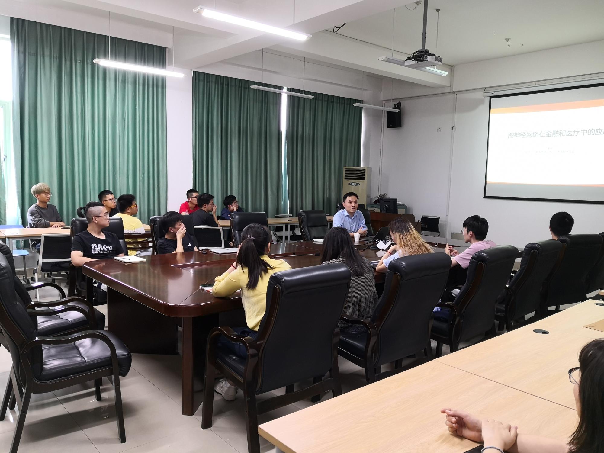 李朝博士首先给大家介绍了机器学习领域中的图神经网络方法,并讲解了图神经网络方法在金融和医疗领域中的应用情况。在后续的讨论环节中,李朝博士详细解答了同学们在人工智能学习中遇到的各种问题,为产学研服务提出了一些思路,对雷速体育app
