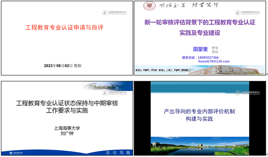 本次研修班内容包括工程教育认证的“主线”和“底线”若干问题解析、产出导向的专业内部评价机制构建与实践、工程教育专业建设申请(2023版)的准备与撰写、新版(2022版)自评报告各章节重点工作与要素解析、新一轮审核评估背景下的工程教育专业认证实践及专业建设、工程教育专业认证状态保持与中期审核工作要求与实施。此外,线下参会的老师还前往贵州大学材料与冶金学院进行专业考察,学习兄弟院校的认证经验。