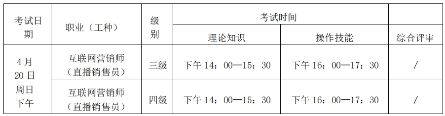 考试时间为2025年4月20日(周日)下午,请考生根据申报的职业(工种)和等级参加考试,具体安排如下:
